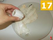 Una volta pronto, prendete una ramina piatta e trasferite prima il branzino delicatamente su un piatto piano da portata (16) ed condite prima con sale fino (17) e dopo con olio di oliva extravergine quanto basta (18).