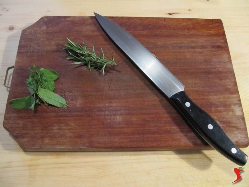 Prendiamo ora gli aromi e laviamoli sotto acqua fredda, dopo di che tritiamoli finemente tutti insieme su di un tagliere. Tagliamo anche 5-6 fette di limone oppure anche di arancia, con le quali riempiremo la pancia delle orate e decoreremo i piatti quando le nostre orate al cartoccio saranno pronte.