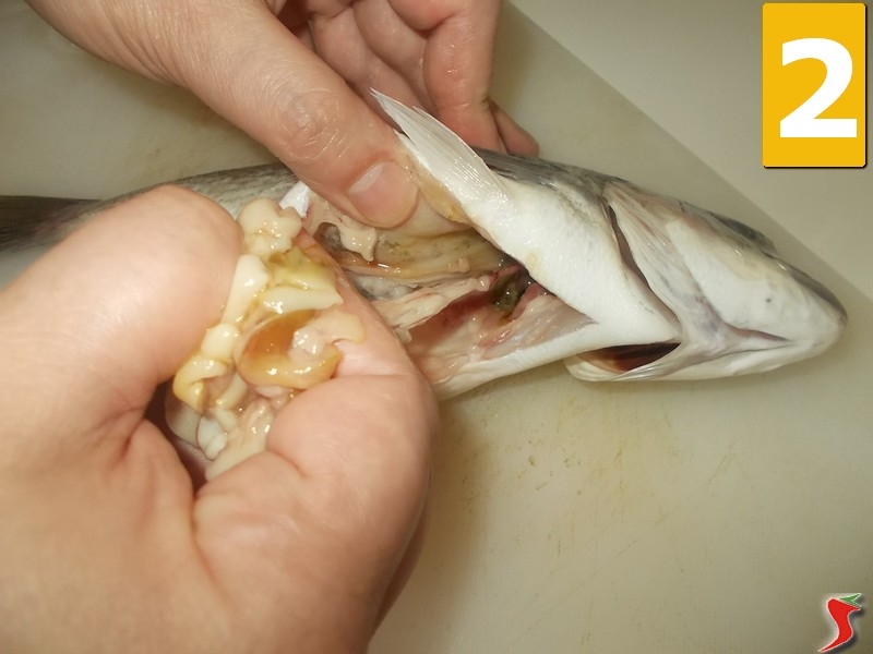La pietanza che vogliamo proporvi oggi, rientra a far parte della tradizione culinaria del nostro paese, che vanta numerose ricette tutte differenti tra loro, e con l'aggiunta di numerosi ingredienti.... Iniziate la ricetta pulendo le orate, in particolare aprendo la pancia con le forbici (1). Partite con il taglio, dall'orifizio fino a sotto le branchie. Estraete le viscere (2) ed estraete anche le branchie (3). Ripetete la stessa operazione per tutti i pesci.