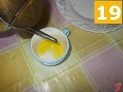 Ora versate un pochino di olio extravergine di oliva (19) in una tazzina da caffè e con un pennello iniziate a ungere il pesce (20). Quindi iniziate a metterci sopra il pane frullato (21) con il resto degli ingredienti fino a ricoprirlo completamente, compattando il tutto con il dorso del cucchiaio.