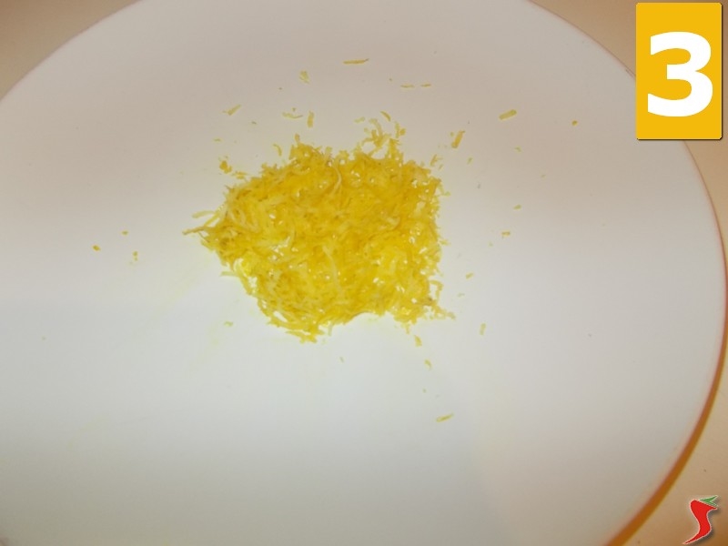 Quindi tagliate il limone in due e spremetene il succo (4) con lo spremiagrumi per versarlo in un bicchiere (5) in cui poi unirete anche la scorza grattugiata (6) amalgamando il tutto.