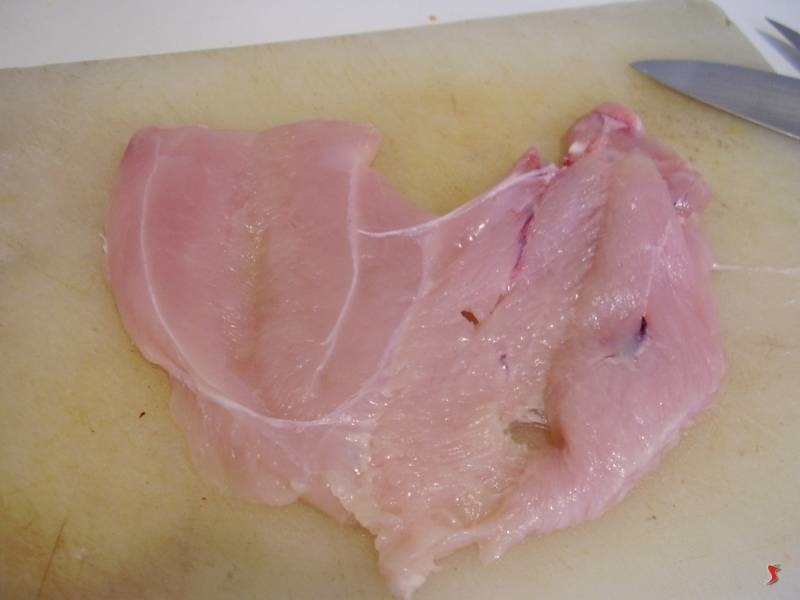 Prendete una pentola antiaderente abbastanza ampia e ponete dentro un filo d'olio. Mettete a scaldare e una volta pronto mettete il petto a rosolare su entrambi i lati per 4 minuti ciascuno. Quindi sfumate 10 cl di vino bianco per cinque minuti ancora.