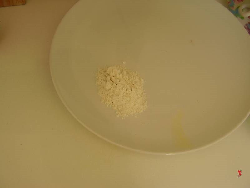Per cominciare dovete prendere i petti di pollo e tagliarli in bocconcini, piccoli cubi di circa un centimetro di lato. Poi prendete la farina e spargetela su un piatto, su cui poi metterete i bocconcini di pollo per infarinarli bene. Premeteli contro la farina e coprite bene tutti i lati.