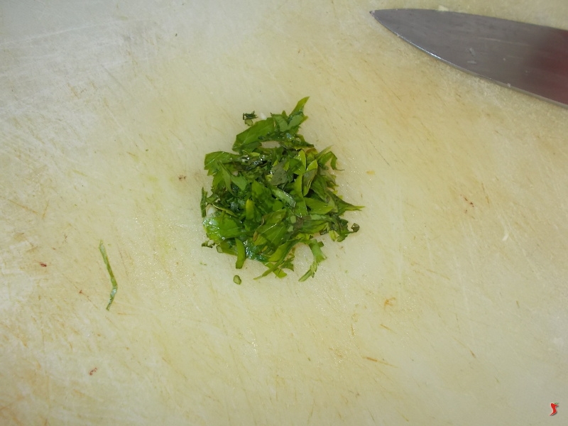 Nel frattempo che rosolate il pollo iniziate a trattare gli altri ingredienti, ovvero iniziate a tritare finemente i due spicchi d'aglio, la cipolla e il coriandolo. Metteteli quindi da parte.