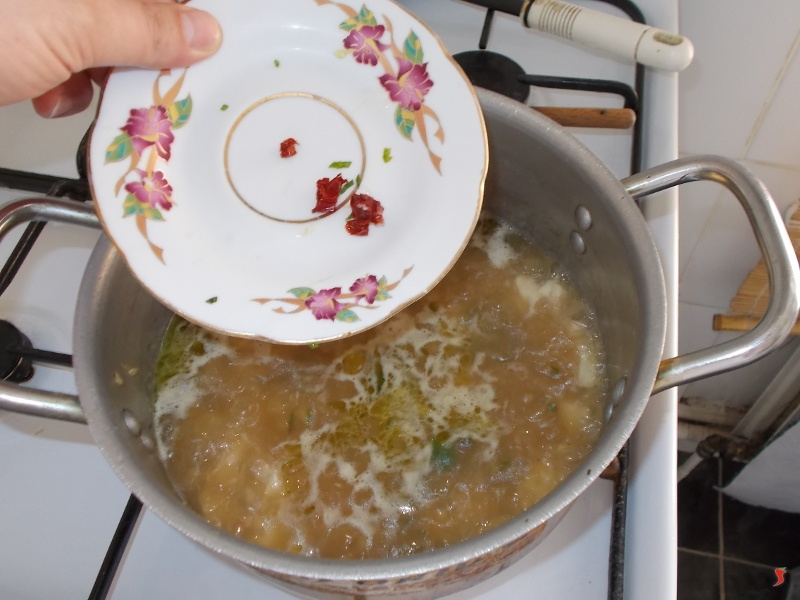 Quindi aggiungete anche tutto il brodo fino a coprire ben oltre il pollo, alzate la fiamma per portare a bollore e aggiungete anche il peperoncino (o il jalapeño). Infine aggiungete il riso e mescolate bene il tutto con il cucchiaio di legno. Con la fiamma abbastanza alta iniziate a far ritirare il brodo facendo attenzione a che il riso cuocia.