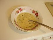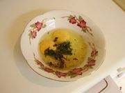Rompete ora le due uova in una piccola scodella mantenendo sia l'albume che il tuorlo. Salate con un pizzico di sale, ricordando che l'uovo esalta la salinità. Quindi iniziate ad aggiungere il prezzemolo tritato, il formaggio, il pepe macinato e la noce moscata. Con una forchetta iniziate a sbattere le uova per ottenere la classica omelette cruda che verrà poi cotta.