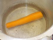 Per prima cosa lavate bene le carote, prendete un pelapatate e pelate tutta la buccia. Mettete a scaldare in un pentolino dell'acqua salata e una volta che inizia a bollire metteteci dentro le carote per farle scottare 5 minuti. Queste dovranno essere appena ammorbidite e ancora croccanti.