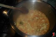 In un tegame abbastanza capiente mettete uno spicchio d'aglio dopo averlo schiacciatelo. Fatelo rosolare e toglietelo dal tegame ed aggiungete il soffritto.