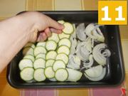 Trascorsa la prima meta del tempo necessario, estraete la teglia e poggiatela sopra il piano da lavoro oppure sul tavolo, ed aggiungete il vino bianco utilizzando un bicchiere (16), dopo infornate nuovamente (17) e terminata la cottura estraete di nuovo la teglia con le cipolle e le zucchine (18). Impiattate la ricetta ancora calda e servitela in tavola accompagnandola con del buon vino bianco fresco dai sapori fruttati.