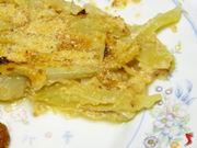 Una ricetta che da grandi soddisfazioni, è lo sformatino di finocchi, tagliare i finocchi a listarelle, farli lessare in acqua bollente, ma se si fanno lessati è meglio tenerli interi, in padella con dell’olio e verso fine cottura aggiungere un po’ d’acqua, scolarli e metterli in una teglia imburrata e iniziare a fare gli strati di finocchi, formaggio filamentoso, che può essere della mozzarella, fino a che non si finisco gli ingredienti, e sull’ultimo strato abbondare con parmigiano e un pizzico di pan grattato e qualche fiocco di burro; infornare e il risultato sarà ottimo.