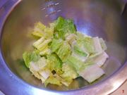 Prendete le foglie di lattuga e lavatele bene sotto l'acqua corrente. Quindi strizzatele e asciugatele con la centrifuga, prima di metterle su un tagliere. Con un coltello eliminate la parte bianca e quindi tagliate a striscioline la parte verde delle foglie per metterle in una planetaria.