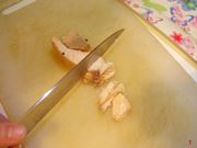 Ora prendete il salmone scolato e con un coltello privatelo della pelle. Quindi tagliate il filetto in tanti piccoli pezzi e mettetelo da parte.