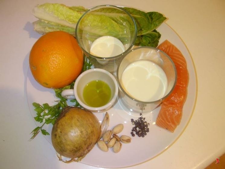 Per preparare l'insalata di salmone vi occorreranno alcuni ingredienti che che dovrete acquistare in quanto difficilmente avrete già in casa. Per un'insalata per due persone procuratevi dunque: