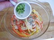 Per chi vuole mantenere in forma il proprio fisico e nello stesso tempo assaporare piatti unici dal sapore delicato, questa ricetta è quello che fa voi.Abbiamo utilizzato la melanzana e la mozzarell... Per prima cosa lavate bene i peperoni, apriteli ed iniziate ad eliminare tutti i semi sotto l'acqua corrente, tagliando via tutte le parti bianche interne. Quindi tagliate a strisce, piccole listelle, i peperoni.