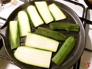 Dopo aver terminato il taglio conferendo alla zucchina la forma desiderata, posizionare la griglia sul fornello a fiamma alta e appena sarà abbastanza calda si possono mettere le zucchine sull utensile. Dopo almeno un minuto, girare le fette per consentire una cottura omogenea da ambedue i lati.
